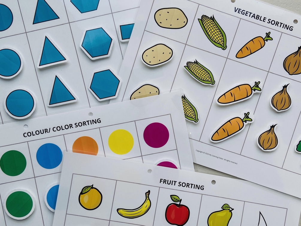 The Mixed Sorting Printable Activity from My Learning Folder invites little learners to explore shapes, colours, and food items in a fun, hands-on way. It pairs beautifully with your display cards and is also included in the value-packed Starter Pack.